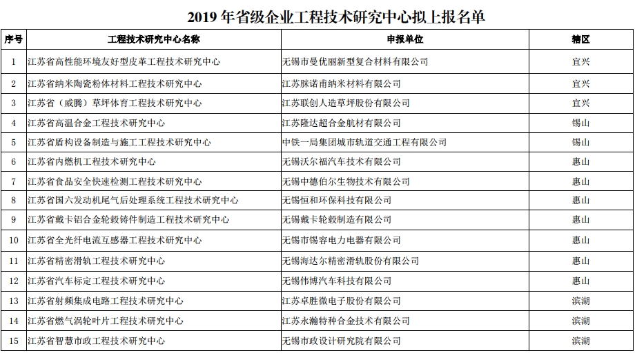 根據(jù)《關于做好2019年省級企業(yè)工程技術研究中心及省級企業(yè)院士工作站建設工作的通知》(蘇科研函〔2019〕264號)和《關于下放省級工程技術研究中心和省級企業(yè)人才站點管理權限的通知》(蘇科條發(fā)〔2015〕136號)的要求,受省科技廳委托,科技局對申報2019年省級企業(yè)工程技術研究中心的項目進行了評審?,F(xiàn)將擬上報結果進行公示,公示時間5個工作日(自2019年8月26日至8月30日)。 任何單位和個人如對公示項目有異議,可在公示期內(nèi)以書面形式提出,并列舉異議理由和相關證明材料。以單位名義提出的,需加蓋單位公章;以個人名義提出的,需寫明自己的真實姓名、單位、職務職稱、聯(lián)系地址及電話等。 監(jiān)督電話:81821912 咨詢電話:81821907?![]()